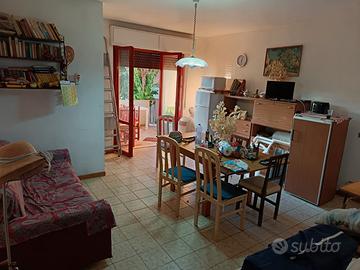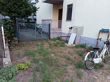 Alba Adriatica, zona Villa Fiore. Appartamento 60mq circa, in edificio recentemente ristrutturato, con giardino di 180 mq circa e ingresso autonomo da cancello carrabile e servitù di passaggio con autovettura. Box auto chiuso in garage condominiale. 1 wc principale e 1 wc di servizio. Cucina separata dall'ingresso-soggiorno. Spese di condominio 450 euro annui circa. NO AGENZIA.