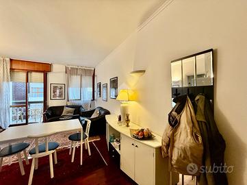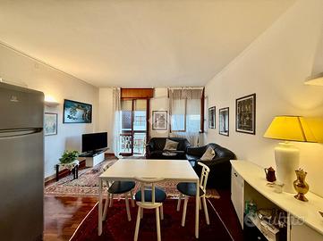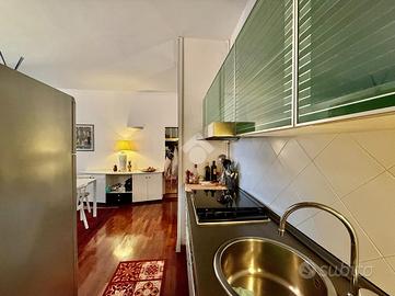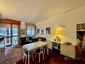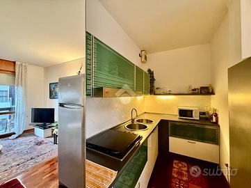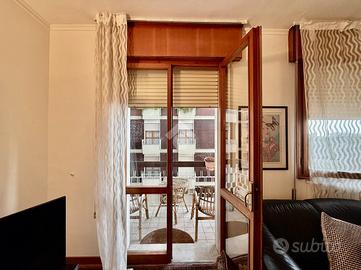 L'ingresso si apre sulla zona giorno caratterizzata da soggiorno con balcone di riferimento sulla passeggiata pedonale e angolo cottura separato.