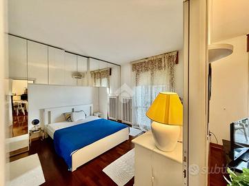 La zona notte è composta da una camera matrimoniale con bagno dotato di doccia, attacchi lavanderia e un secondo balcone privato.