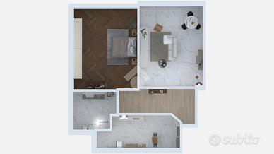 L'appartamento è composto da ingresso su disimpegno, soggiorno ampio e luminoso, cucina abitabile, ampia camera da letto, bagno finestrato con box doccia.