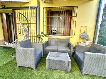 ADRO: in zona residenziale tranquilla e centrale, comoda ai principali servizi, proponiamo in vendita un accogliente bilocale al piano terra con giardino esclusivo. La soluzione, ha un ingresso indipendente, entrando troviamo una zona giorno openspace che si affaccia direttamente sul giardino privato e la cucina è a vista e ben distribuita, creando un ambiente armonioso e funzionale. Vi è inoltre una stanza accessoria adibita a locale lavanderia e ripostiglio. La camera matrimoniale è dotata di ampi spazi, mentre il bagno finestrato è dotato sia di box doccia che di vasca, offrendo un'ottima soluzione per ogni esigenza. L'immobile è provvisto di riscaldamento autonomo con termosifoni e aria condizionata, garantendo comfort durante tutto l'anno. A completare la proprietà, troviamo una cantina e un posto auto scoperto privato. Per maggiori informazioni o per fissare una visita, contattaci direttamente in Agenzia!