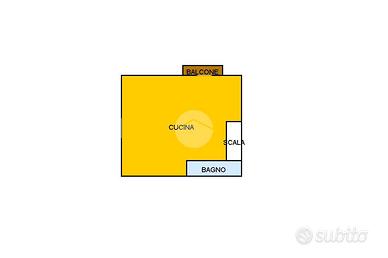 L'ingresso principale apre sulla scala che conduce al primo piano, dove si trova un vano unico con angolo cottura separato da una comoda penisola. Il doppio affaccio, con balcone e finestra alla francese, permette di sfruttare a pieno la luce naturale, garantendo un ambiente soleggiato tutto il giorno. Completa il piano un bagno di servizio.