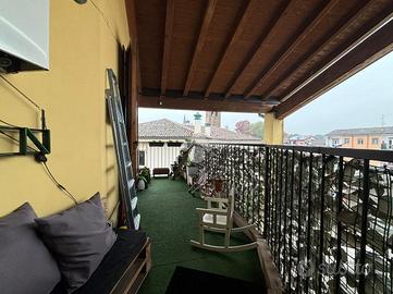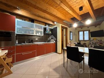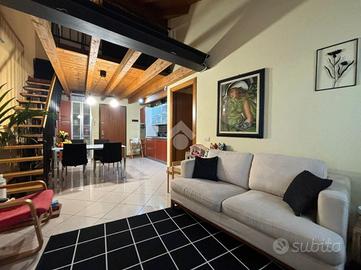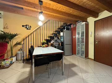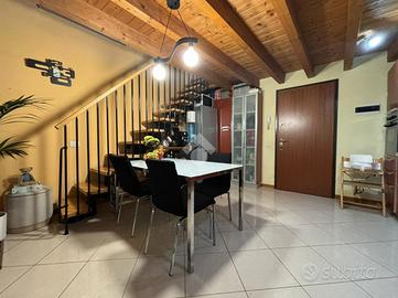 AGNADELLO: In tranquillo contesto residenziale, proponiamo in vendita appartamento di due locali e servizi con soppalco e ampio box. L'abitazione, di 48 mq, si trova al secondo ed ultimo piano della palazzina ed è caratterizzata da soffitto mansardato con travi a vista in legno. L'ingresso si apre sulla zona giorno, composta da un unico locale open space con angolo cottura. Tramite una scala interna si accede al locale soppalcato di ulteriori circa 11 mq, ad oggi usato area relax. Sempre dalla zona giorno si ha accesso al terrazzo coperto di 8 mq. Il disimpegno serve la zona notte, composta da camera da letto matrimoniale e bagno con vasca. Dalla camera da letto si ha accesso al balcone di 3 mq. Completa la proprietà il box di 27 mq al piano terra con basculante elettrica. I serramenti sono in legno e doppio vetro con persiane in legno; i pavimenti sono in ceramica. L'immobile dispone di riscaldamento autonomo, aria condizionata, zanzariere e porta blindata. La classe energetica è in fase di aggiornamento.