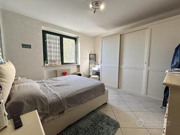 La camera matrimoniale è ampia e particolarmente luminosa, dotata di una grande finestra. A fianco si trova una cabina armadio separata, comoda e funzionale. Il disimpegno è stato organizzato come zona lavanderia, mentre il bagno, completo di doccia, gode anch'esso dell'accesso diretto al terrazzo.