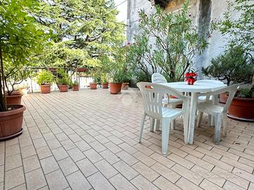 AIRUNO - (VENDESI LA NUDA PROPRIETA': il proprietario vende il proprio immobile, riservandosi il diritto di viverci per tutta la vita; età venditore 88 anni) - In posizione centrale, a pochi passi dal Comune, dalla stazione ferroviaria (linea Milano-Lecco) e da tutti i servizi e le comodità presenti in zona (scuole, posta, farmacia, fermate mezzi pubblici, studi medici, supermercati, negozi di prima necessità, ecc.), proponiamo una porzione di casa semindipendente con ampio terrazzo di circa mq 50. L'abitazione, libera da terra a cielo, è stata ristrutturata nel 2004, ha una superficie di circa mq 72 che si sviluppa su un unico livello ed è costituita da ingresso, soggiorno, cucina abitabile, camera matrimoniale e bagno finestrato. Dalla cucina si accede direttamente al grande terrazzo che dona alla casa uno sfogo esterno vivibile, ideale per trascorrere momenti di relax all'aperto durante le belle giornate. All'interno dell'abitazione, una comoda scala in muratura consente di raggiungere l'ampia autorimessa singola di circa mq 20. La soluzione rappresenta un'ottima opportunità per chi desidera una casa semindipendente, con costi di gestione ridotti, grazie all'assenza di spese comuni e al riscaldamento autonomo, completa di box e con un terrazzo, unico nel suo genere per dimensioni.