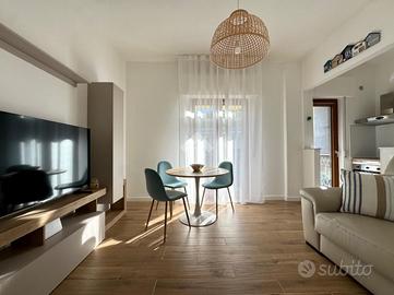 BILOCALE DI NUOVA RISTRUTTURAZIONE CON CANTINA E POSTO AUTO CONDOMINIALE. Alassio - a pochi passi dal centro In stabile in ottimo stato di manutenzione, dotato di ascensore, proponiamo appartamento situato al primo piano e recentemente e finemente ristrutturato (2024). L'ingresso si apre su un disimpegno che conduce all'ampia e luminosa zona giorno con angolo cottura, servita da un primo balcone. La zona notte comprende una camera matrimoniale con ulteriore sfogo esterno e un bagno finestrato completo di box doccia, che garantisce luce e areazione naturale. A completare la proprietà cantina e posto auto condominiale. L'abitazione è completamente elettrica, equipaggiata con piastra a induzione e impianto di climatizzazione caldo/freddo con pompe di calore di ultima generazione, soluzione che assicura comfort e risparmio energetico. Le spese condominiali contenute ne accrescono ulteriormente l'attrattiva. Un immobile pronto da vivere, ideale come seconda casa al mare o come opportunità di investimento ad Alassio.