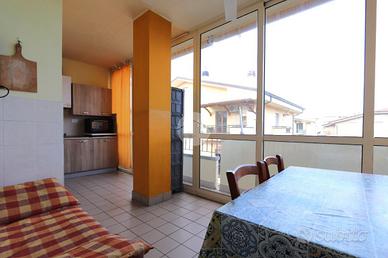 La vera perla di questa proprietà è senza dubbio lo spazio esterno: un ampio terrazzo che, grazie alla presenza di una vetrata scorrevole, si trasforma in uno spazio versatile e vivibile durante tutto l'anno, permettendo di godere di questo ambiente anche nei mesi più freddi, creando una continuità tra interno ed esterno.