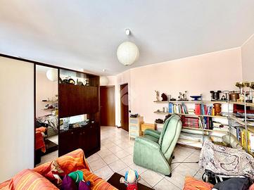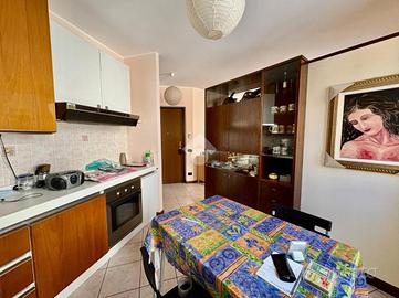 La zona giorno, con soggiorno e cucina open space, luminosa e si affaccia sulla via principale.