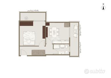 L'appartamento si apre su un ingresso con disimpegno che conduce a una spaziosa camera matrimoniale, corridoio, bagno finestrato, cucina abitabile e due ampi balconi, ideali per godersi momenti di relax all'aria aperta.