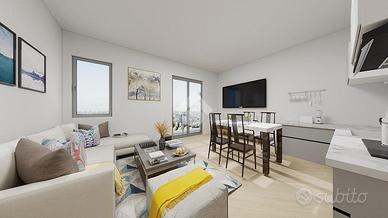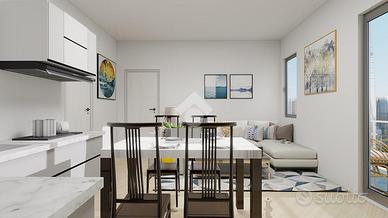 L'appartamento è composto da un ingresso, ampia zona giorno con angolo cottura, camera da letto matrimoniale, bagno finestrato, ripostiglio e balcone .
