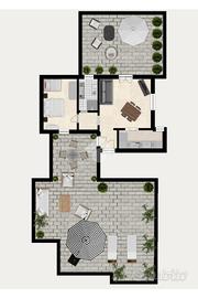 Nei pressi dell'ingresso si trova una seconda terrazza, di generose dimensioni, che rappresenta un valore aggiunto all'immobile: uno spazio versatile ideale per godersi momenti di quiete all'aperto o per essere attrezzato con arredi da esterno, in un contesto riservato e tranquillo.