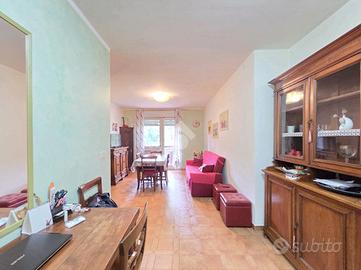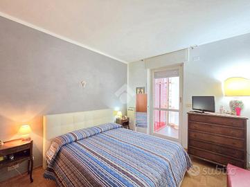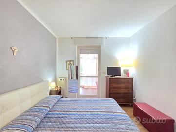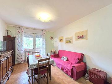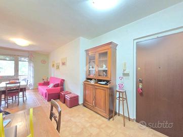 Il soggiorno living accessibile dalla porta blindata, consente di raggiungere ed utilizzare il primo terrazzo con la vista del parco. Inserito nella splendida cornice del complesso residenziale di 'Piazza 8 Marzo', l'immobile è inserito nel fabbricato più riservato dello stesso complesso. L'assenza di barriere architettoniche e la presenza del parco con pista di pattinaggio, campi da bocce ed area attrezzata per i bambini, rendono l'immobile particolarmente interessante. Fin dalla sua progettazione, l'immobile ha visto una modifica sostanziale, che ha invertito l'esposizione della zona giorno con quella della zona notte. La parete lineare attrezzata a cucina, accessibile dal living, è nascosta dietro al muro che la disimpegna dall'ingresso. La camera da letto, che ha preso il posto della cucina, è stata arricchita dalla cabina armadi con porte scorrevoli. Il bagno finestrato ospita la vasca e la lavatrice. Dotato della doppia esposizione, l'appartamento è ubicato al secondo piano e servito dall'ascensore. La sua pavimentazione è omogenea al di fuori del servizio igienico. All'interno del complesso reresidenziale sono presenti i posti auto e, al piano semi interrato è presente la cantina di proprietà . Il secondo terrazzo, sulla facciata interna del condominio, ospita la caldaia che gestisce il riscaldamento autonomo e l'acqua calda sanitaria. La stazione ferroviaria, i mezzi pubblici e ogni altro servizio di prima necessità sono raggiungibili senza l'utilizzo dell'auto.