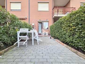 Il soggiorno, locale principale dell'appartamento, si presenta ampio e particolarmente luminoso. La zona cottura, a vista su quest'ultimo, è inserita nella sua rientranza e possiede la finestra indipendente. Subito percepibile è la completa e attenta ristrutturazione eseguita nel 2021. Antifurto, meccanizzazione delle tapparelle, impianti elettrici ed idraulici, così come pavimentazione e rivestimenti sono praticamente nuovi. La porta di ingresso è blindata e monta lo stesso pannello delle porte interne. Tutte sono state già sostituite. L'ingresso avviene sul comodo e funzionale disimpegno, dal quale è possibile raggiungere ogni locale dell'appartamento. La camera matrimoniale è particolarmente grande e, da essa è possibile raggiungere l'introvabile giardino di proprietà preceduto dal balcone. Al momento l'area esterna è stata pavimentata con autobloccanti per poter essere sempre ordinata ed evitarne la manutenzione. Anche la zona giorno possiede un'area esterna e, al suo interno è presente il locale caldaia. Questa, a condensazione, gestisce il riscaldamento autonomo e l'acqua calda sanitaria. Dal disimpegno è raggiungibile anche il bagno finestrato, all'interno del quale oltre ai sanitari a filo muro ed alla doccia in cristallo, trovano spazio anche lavatrice ed asciugatrice. Il ripostiglio, indubbiamente comodo, è adiacente al servizio igienico. Inserito in uno splendido contesto abitativo degli anni '90 privo di barriere architettoniche, è presente l'ascensore ed ha delle spese condominiali molto contenute. La doppia esposizione lo rende luminoso e gli ampi spazi Interni, pavimentati omogeneamente, restituiscono un'ottima vivibilità dei locali. Completo di climatizzazione e arricchito dall'antifurto, l'appartamento possiede le tende esterne anch'esse recentemente sostituite. A completare la proprietà sono la cantina al piano interrato ed il posto auto all'interno del cortile accessibile dal carraio meccanizzato. Rifinito in paramano, il condominio si manifest...