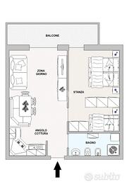 Primo piano composto da zona giorno con angolo cottura, ampia stanza matrimoniale, bagno e balcone; completo di posto auto coperto e armadietto/deposito sci. Riscaldamento centralizzato a gas metano con contacalorie; produzione acqua calda con boiler elettrico. Zona pianeggiante e strategica, comoda al centro, ai servizi e al parco Andalo Life. Nel 2022 l'involucro esterno è stato completamente riqualificato (facciata/cappotto, serramenti, scuretti). Recentemente sostituita centrale termica.