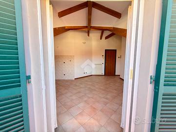 La soluzione presenta l'ingresso sulla luminosa zona giorno con angolo cottura e sfogo sul terrazzo, di seguito troviamo il disimpegno che conduce al pratico bagno finestrato con doccia e alla spaziosa camera da letto matrimoniale.