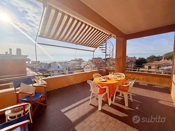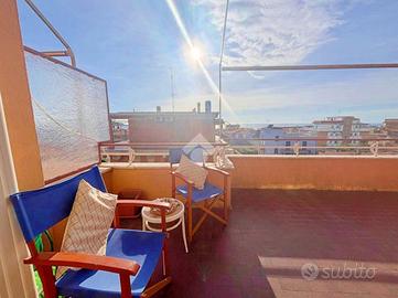 L'appartamento si distingue per la sua luminosità e per gli spazi esterni vivibili, ideali per chi desidera godere appieno le giornate estive. Varcando la porta d'ingresso si viene accolti da un ampio disimpegno, che introduce armoniosamente alla zona giorno. Il soggiorno, è dotato di una grande porta finestra che conduce direttamente al terrazzo, un ambiente perfetto per pranzi all'aperto, momenti di relax e per ammirare la vista mare che rende l'atmosfera unica e suggestiva.
