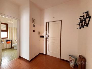 Adiacente al soggiorno si trova la cucina, separata e funzionale, anch'essa dotata di porta finestra che garantisce un'ottima aerazione e una piacevole luminosità naturale. La disposizione degli ambienti permette di vivere la zona giorno in modo pratico e confortevole, mantenendo una netta distinzione tra gli spazi.