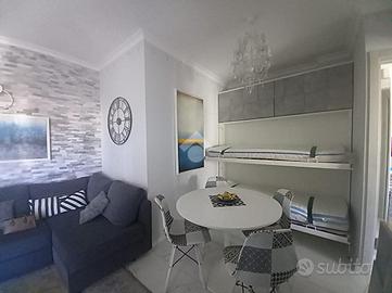 Marina Di Ardea. A pochi passi dal mare proponiamo in vendita un grazioso appartamento posto al secondo ed ultimo piano di una palazzina ristrutturata. L'immobile è composto come segue: Entrando ci accoglie il luminoso soggiorno con angolo cottura, dotato di due posti letto ed accesso allo spazio esterno vivibile. Nell zona notte la camera matrimoniale e bagno finestrato con doccia. La soluzione recentemente e finemente ristrutturata,è dotata di infissi in alluminio doppio vetro, inferriate e condizionatori e verrà venduta completa del mobilio. Completa la soluzione, la terrazza solarium con vista mare ed il posto auto esterno di pertinenza. Si presenta in ottimo stato ed è abitabile da subito.