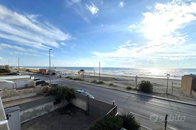 Marina di Ardea. Proponiamo in vendita un appartamento posto al primo piano, di una palazzina situata fronte mare. L'immobile è composto come segue. Entrando nella zona giorno troviamo un comodo soggiorno e cucina abitabile. Nella zona notte un' ampia camera matrimoniale e bagno finestrato con doccia. La soluzione presenta ampi spazi interni e da ogni ambiente è possibile accedere alla terrazza vista mare. E' dotato di infissi in pvc doppio vetro recentemente sostituiti ed inferriate a tutte le finestre. Completa la soluzione il box auto di pertinenza, accessibile sia dall'esterno che dall'interno della palazzina e la cantina. Si presenta in buono stato, se pur dotato di materiali originari.