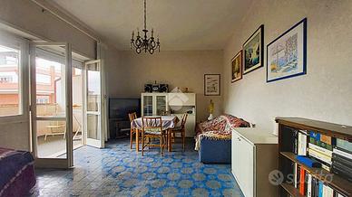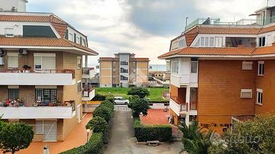 Marina di Ardea. Proponiamo la vendita di un appartamento posto al secondo piano con ascensore, di una palazzina situata a pochi passi dal mare e dai principali servizi. L'immobile è composto come segue. Entrando nella zona giorno ci accoglie disimpegno con ripostiglio, un comodo soggiorno con terrazzo vivibile vista mare e cucina abitabile con balcone. Nella zona notte troviamo l'ampia camera matrimoniale ed il bagno finestrato con doccia. L'immobile è dotato di infissi in legno monovetro. Completa la soluzione il box auto e la cantina di pertinenza. La soluzione si presenta in buono stato se pur dotato di materiali originali,