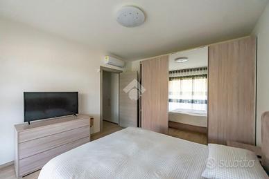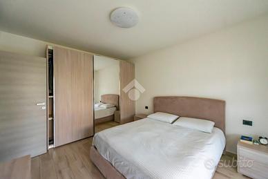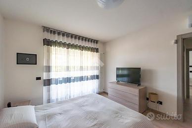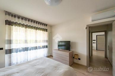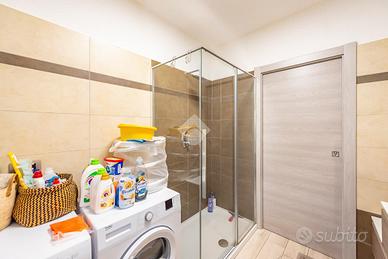 La camera matrimoniale, ampia e ben distribuita, è dotata di grandi finestre che garantiscono luce naturale durante tutto l'arco della giornata. Il bagno finestrato è elegante e spazioso, completo di sanitari sospesi, box doccia in cristallo e finiture contemporanee.