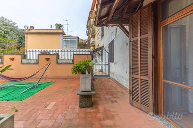 Ariccia Alta, appartamento di 55 mq situato al piano terra di un edificio storico risalente agli anni '30 e composto da ingresso, soggiorno, cucinotto, camera e bagno. Uno dei punti di forza di questa proprietà è il terrazzo di 60 mq, che offre un affaccio sul verde, perfetto per momenti di relax all'aperto. La posizione strategica garantisce la vicinanza a tutti i servizi essenziali, rendendo la vita quotidiana comoda e agevole.