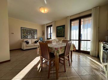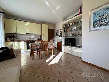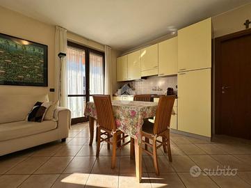 ARZAGO D'ADDA: In tranquilla zona residenziale, proponiamo in vendita appartamento di due locali e servizi con box. L'appartamento, di circa 50 mq, si trova al primo piano della palazzina, edificata nel 2005. L'ingresso si apre sulla zona giorno, composta da un unico locale open space con angolo cottura. Il disimpegno serve la zona notte, composta da bagno con doccia e camera da letto matrimoniale. Dal soggiorno si ha accesso al balcone di quasi 7 mq con esposizione a ovest, con tende da sole elettriche. Completa la proprietà il box singolo al piano terra. I serramenti sono in legno e doppio vetro con ante chiuse in legno; i pavimenti sono in ceramica. L'immobile dispone di riscaldamento automo, aria condizionata, zanzariere e porta blindata. La classe energetica è in fase di aggiornamento. Disponibile in tempi brevi.