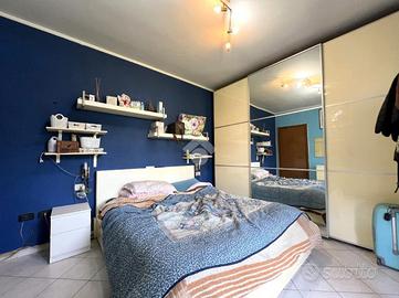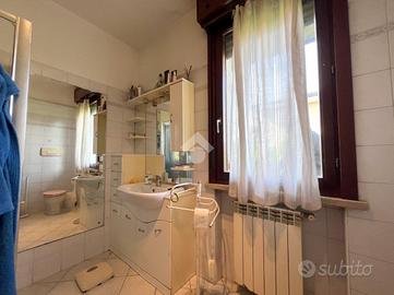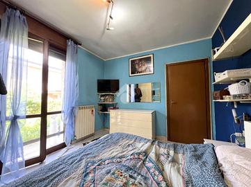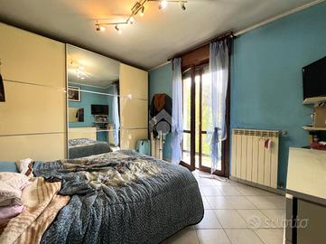 La zona notte comprende una spaziosa camera matrimoniale, anch'essa con portafinestra che si affaccia sul giardino, e un bagno finestrato dotato di doccia e attacco per la lavatrice.