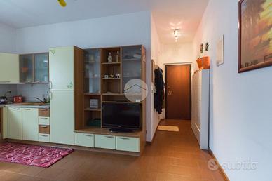 Via Auna, in piccolo contesto della zona Nord, appartamento al piano rialzato servito da ascensore. La porta d'ingresso da accesso su un luminoso soggiorno living con angolo cottura, che accompagna alla camera da letto matrimoniale ed al bagno finestrato con pratico box doccia. E' presente un balcone angolare che si estende per tutta la doppia esposizione dell'immobile. Completano la proprietà il posto auto condominiale, una cantina al piano interrato ed il box auto. L'appartamento viene venduto locato con regolare contratto d'affitto. La zona in cui si trova è tranquilla, senza però rinunciare alla comodità dei principali servizi.