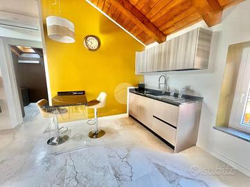 Nel cuore di un nuovo condominio ristrutturato nel 2025, proponiamo un esclusivo appartamento mansardato mai abitato. Rifinito con materiali di pregio, offre un open space con soggiorno e cucina, una spaziosa camera matrimoniale, servizio e un balcone lungo tutto il piano. Include posto auto e cantina. L'appartamento è arredato con cucina e mobili di alta qualità. Affitto esclusivo con contratto di 12 mesi.