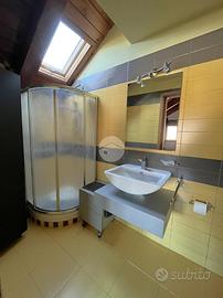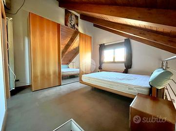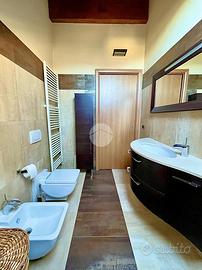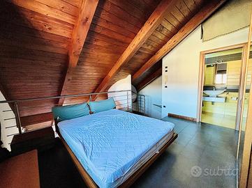 Salendo la scala interna, si accede al piano superiore, dove una camera da letto si affaccia con charme sulla zona giorno sottostante, creando un'atmosfera ariosa e accogliente. Il piano è ulteriormente valorizzato da un bagno con doccia finestrato, pensato per offrire praticità e comfort.