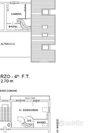 Questo appartamento, situato all'ultimo piano di una palazzinasenza ascensore in posizione centrale in strada chiusa, che garantisce tranquillità e privacy.