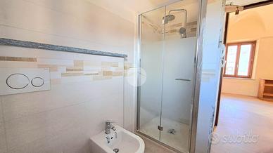 Al piano terra si sviluppa la zona giorno, accogliente e funzionale, con soggiorno e bagno di servizio finestrato. Una comoda scala interna conduce al piano superiore, dove si trova la camera da letto e un secondo bagno finestrato, completo di box doccia.