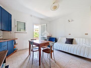 L'appartamento oggetto di vendita è un piano primo e ultimo di un piccolo complesso dove non sono presenti spese condominiali. Accediamo a quest'ultimo mediante scala esterna, troviamo due diversi portoni di ingresso dove sono presenti due monolocali attualmente non comunicanti. Ciascuno ha una metratura di circa 32 mq e sono composti da soggiorno con angolo cottura (all'interno della quale è presente il divano letto ) bagno finestrato e balcone dal quale si intravede uno scorcio di vista mare e dove è possibile cenare all'aperto. Questa soluzione ad oggi è ottima nell'ottica dell'investimento per la locazione estiva, perchè si ha l'opportunità di sfruttare due diversi appartamenti, oppure di utilizzarne uno per se e l'altro per la locazione. Una seconda opzione potrebbe essere quella di buttare giù il muro che attualmente divide i due monolocali e creare un comodo bilocale di oltre 60 mq con ampia zona giorno e angolo cottura, bagno di servizio e balcone e realizzare una comoda camera da letto con bagno privato e balcone. L'intera facciata dell'immobile è appena stata ristrutturata, così da evitare eventuali spese straordinarie per i prossimi anni.