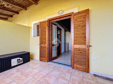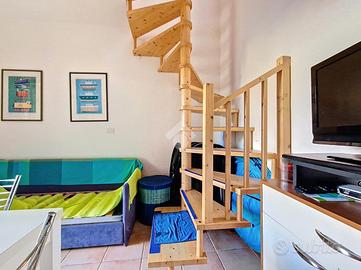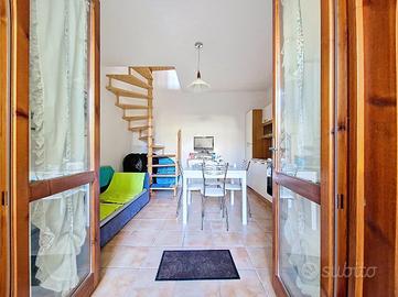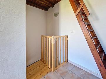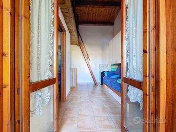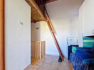 Una scala interna conduce alla zona notte, composta da una camera matrimoniale con terrazzo affacciato sul verde. All'interno della camera è presente un comodo soppalco, ideale per ricavare due ulteriori posti letto. Completa la proprietà un bagno finestrato.