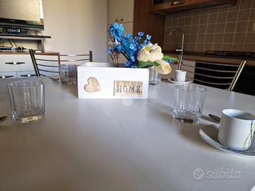 All'ingresso troviamo una luminosa zona giorno con angolo cottura, caratterizzata da colori freschi che richiamano l'atmosfera della casa al mare.