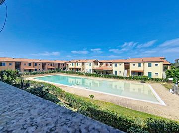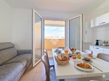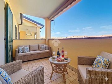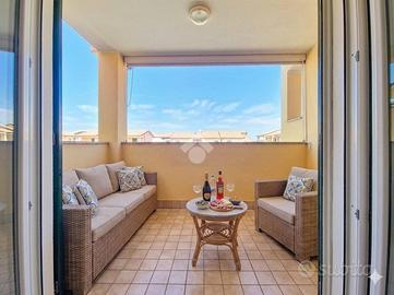 BAIA DELLE MIMOSE - BADESI - ANFITEATRO GLI OLEANDRI - A pochi passi dalla spiaggia. Baia delle Mimose è una destinazione ideale per coloro che cercano una vacanza rilassante in un ambiente naturale mozzafiato. È anche una base perfetta per esplorare ulteriormente la splendida regione della Sardegna, con le sue numerose attrazioni culturali e paesaggi spettacolari. Nelle vicinanze, è possibile trovare servizi come ristoranti, bar e strutture ricettive che offrono una vista spettacolare sulla baia. La vegetazione circostante aggiunge un tocco di bellezza naturale, con piante aromatiche, come il mirto e il rosmarino, che emanano profumi deliziosi nell'aria. L'immobile che vi proponiamo in vendita si trova a soli 50 metri dalla spiaggia, raggiungibile con una passeggiata di pochi minuti. Situato al piano primo ed ultimo di un complesso condominiale. Accediamo all'appartamento mediante scala esterna, all'ingresso troviamo la zona giorno con angolo cottura, rende tutto più luminoso il terrazzo esposto al sole tutto il giorno. Dal disimpegno d'ingresso accediamo anche alla zona notte composta da un bagno finestrato e da una camera da letto matrimoniale attrezzata di altri due letti singoli. Il posto auto assegnato è incluso nel prezzo. Ulteriore punto a favore dell'immobile la presenza dell'ampia piscina condominiale, situata proprio di fronte all'immobile. Questa soluzione è perfetta per chi cerca un ottimo investimento da mettere a reddito o una casa vacanze a pochi passi dal mare.