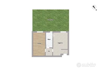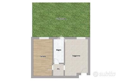 L'appartamento si sviluppa tutto al piano terra: ingresso nel soggiorno con angolo cottura con accesso alla corte privata, camera matrimoniale, bagno finestrato con doccia.