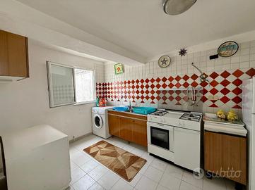 La cucina, anch'essa collegata al terrazzo, è comoda e funzionale, mentre la camera da letto e il bagno completano la zona abitativa.