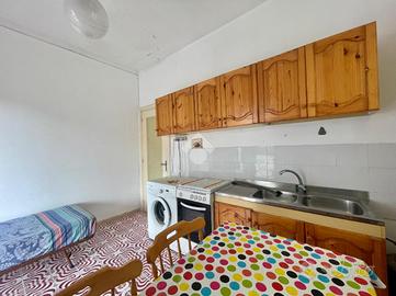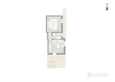 L'appartamento presenta all'ingresso un salotto con angolo cottura e finestra, un disimpegno che conduce al bagno e alla camera da letto con balcone.