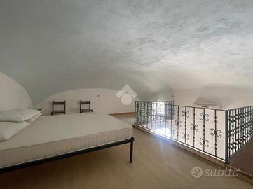 Una scala conduce al piano superiore, dove si trova una spaziosa camera soppalcata, che dona un tocco di charme e calore all'abitazione.