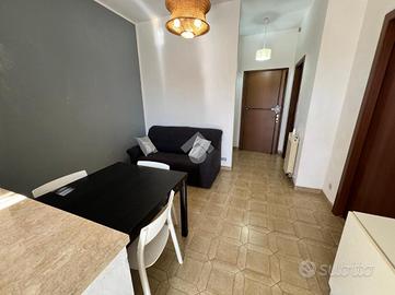 In zona tranquilla e residenziale, in piccola palazzina, appartamento arredato al primo ed ultimo piano. L'ingresso è living sul soggiorno con angolo cottura, camera da letto, bagno con vasca e ripostiglio. Sia la zona giorno che la zona notte affacciano sul terrazzino esposto completamente a Sud, dove è possibile mettere un tavolino con sedie e trascorrere momenti all'aperto. Il riscaldamento è autonomo a metano, gestito dalla recente caldaia a condensazione. Completo di cantina e box auto al piano terreno. Le spese condominiali sono corrispondenti ad € 40,00 mensili e sono comprensive della pulizia delle scale, luce delle parti comuni e acconto dell'acqua potabile. A fine esercizio verrà effettuato il conguaglio. La proprietà richiede un massimo di due persone, contratti di lavoro a tempo indeterminato e non sono ammessi animali.