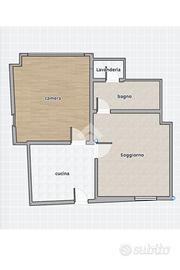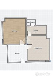 L'appartamento è composto da: una spaziosa camera da letto, una cucina abitabile e un soggiorno. Il bagno, ben progettato, compreso di lavanderia, completa la disposizione interna.