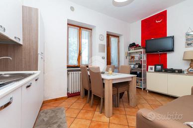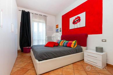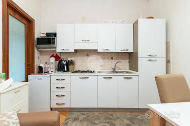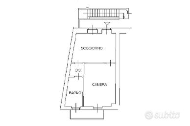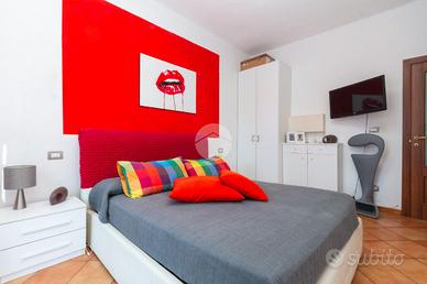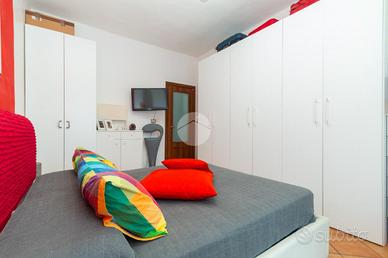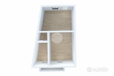 L'immobile è al primo ed ultimo piano di un piccolo contesto. Tramite il portoncino d'ingresso si accede alla zona giorno resa luminosa da una doppia finestra dov'è possibile posizionare una cucina lineare, un tavolo con 4 sedie, un divano e una parete attrezzata. La camera da letto è spaziosa, dotata di un balcone e può ospitare un arredo completo di un letto a due piazze, due comodini, un armadio, un comò ed eventualmente anche una scrivania. Il bagno completo di tutti i sanitari ha la doccia affaccia sullo stesso balcone della camera da letto.