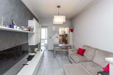 Borgo Melano, principalmente in Via Manzoni, via tranquilla ma a pochi passi dai principali servizi quali EuroSpin, il centro di Beinasco e il centro commerciale Le Fornaci. Facendo pochi passi si arriva su Strada Orbassano dove troviamo le fermate dei pullman che portano a Torino e ad Orbassano. In stabile in paramano con ascensore appartamento al primo piano. Tramite portoncino blindato si ha l'accesso alla zona giorno living dotato di cucinino attrezzato su entrambe le pareti dotato di finestra e porta finestra con gli infissi in pvc con il doppio vetro con affaccio sul primo balcone verandato con caldaia esterna e scarichi per lavatrice. La camera da letto è ampia e ben squadrata ed è dotata di porta finestra con affaccio sul secondo balcone. Il bagno è dotato di doccia e di finestra. L'appartamento è stato completamente ristrutturato e la ristrutturazione comprende la pavimentazione, gli impianti sia idraulici che elettrici e gli infissi in pvc con il doppio vetro. Il riscaldamento è centralizzato con le termovalvole e completa la proprietà la cantina al piano interrato.