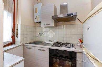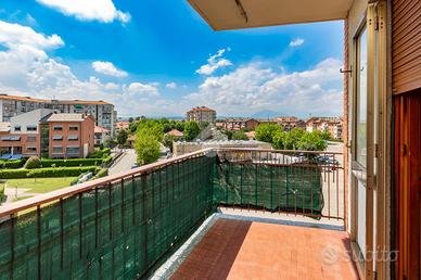 Beinasco centro, precisamente in Strada Torino, vicino a tutti i principali servizi quali Ipercoop, fermate dei pullman, bar, banco fresco fresco e a pochi metri dalla tangenziale per Torino. In stabile in klincker con ascensore e cortile condominiale dove è stata rifatta la guaina dei box e la facciata laterale dove è stato messo il cappotto. Tramite portoncino abbiamo l'accesso al disimpegno con affaccio su tutte le stanze. Sulla sinistra inizialmente troviamo la zona giorno composta da tinello con cucinino molto ampia e luminosa grazie alla presenza di finestra e porta finestra dal quale si accede al primo balcone con vista aperta. Proseguendo troviamo la camera da letto, anch'essa molto ampia, ben squadrata con i soffitti di 3 metri di altezza, di conseguenza facilmente arredabile con la pavimentazione in parquet, molto luminosa per via della porta finestra con affaccio sul secondo balcone con vista aperta su Piazza Dolci dove il giovedì mattina fanno il mercato. Tramite il disimpegno abbiamo lo sgabuzzino molto ampio con la possibilità di poterlo scaffalare. Adiacente alla zona giorno troviamo il bagno finestrato dotato di vasca ed attacchi della lavatrice. Il quarto piano permette all'appartamento di essere molto luminoso ed arioso. Il riscaldamento è centralizzato con le termovalvole. E' presente una cantina al piano interrato.