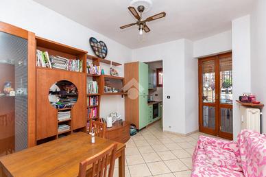 Beinasco centro, vicino a tutti i principali servizi quali Ipercoop, fermate dei pullman, bar, banco fresco fresco, ecc Tramite porta blindata abbiamo l'accesso al disimpegno, il quale da l'affaccio su tutte le stanze. Sulla destra inizialmente troviamo la zona giorno composta da tinello con cucinino molto ampia e luminosa grazie alla presenza di finestra e porta finestra dal quale di accede al balcone piastrellato sull'interno cortile. Proseguendo troviamo la camera da letto, anch'essa molto ampia, ben squadrata con i soffitti di 3 metri di altezza, di conseguenza facilmente arredabile con la pavimentazione in parquet, molto luminosa per via della finestra. Tramite il disimpegno abbiamo lo sgabuzzino molto ampio con la possibilità di poterlo scaffalare. Adiacente alla zona giorno troviamo il bagno finestrato dotato di box doccia ed attacchi della lavatrice. Il riscaldamento è centralizzato con le termovalvole. E' presente una cantina al piano interrato.