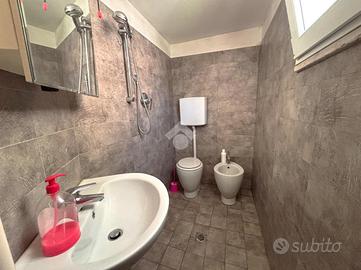 Un comodo disimegno ci conduce nella zona notte, che comprende una camera da letto matrimoniale servita da un ripostiglio, un bagno con box doccia e un ripostiglio adibito a cameretta, con un secondo bagno finestrato.
