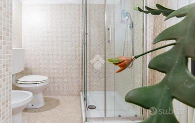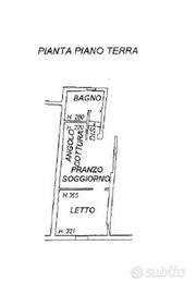 E' composto da soggiorno con angolo cottura, una camera da letto matrimoniale e il bagno, finestrato e con box doccia.