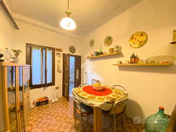 In contesto esente da spese condominiali del caratteristico centro storico di Bienno, appartamento bilocale ben tenuto posto al piano primo. Accedendovi ci accoglie l'intimo soggiorno provvisto di caminetto a vista, dal quale è possibile accedere al lungo terrazzo comodamente vivibile di pertinenza. La cucina rimane comodamente separata e realizzata su misura. Completano il piano la camera da letto matrimoniale ed il bagno, finestrato, provvisto sia di vasca che di doccia. Porzione di sottotetto di pertinenza ideale da sfruttare come zona rimessaggio. Soluzione comprensiva di arredo.